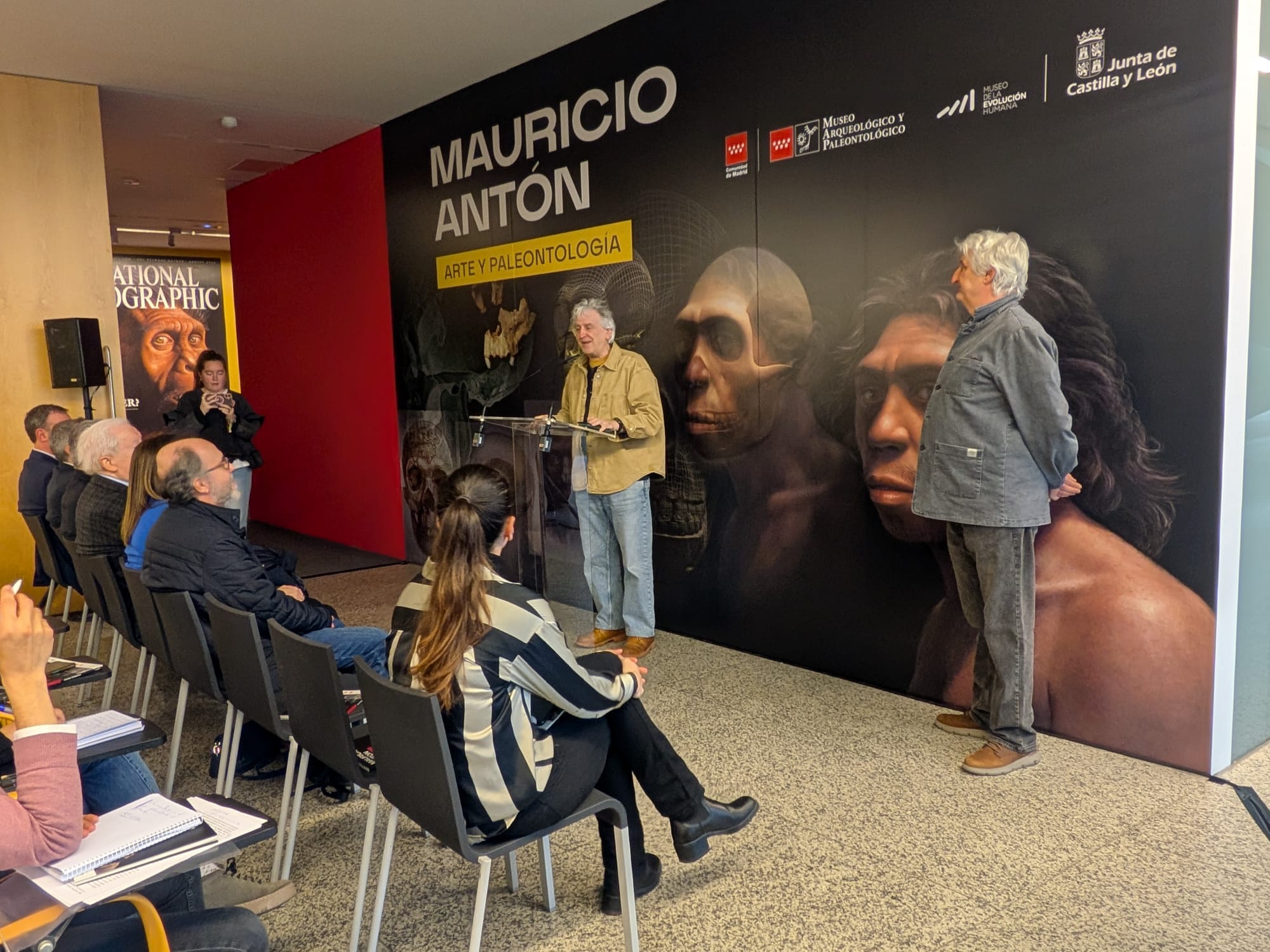 En el acto de presentación han participado Inmaculada Martínez, directora general de Políticas Culturales de la Junta de Castilla y León; Juan Luis Arsuaga, director científico del MEH, el propio Mauricio Antón; y Enrique Baquedano, director del MARPA.