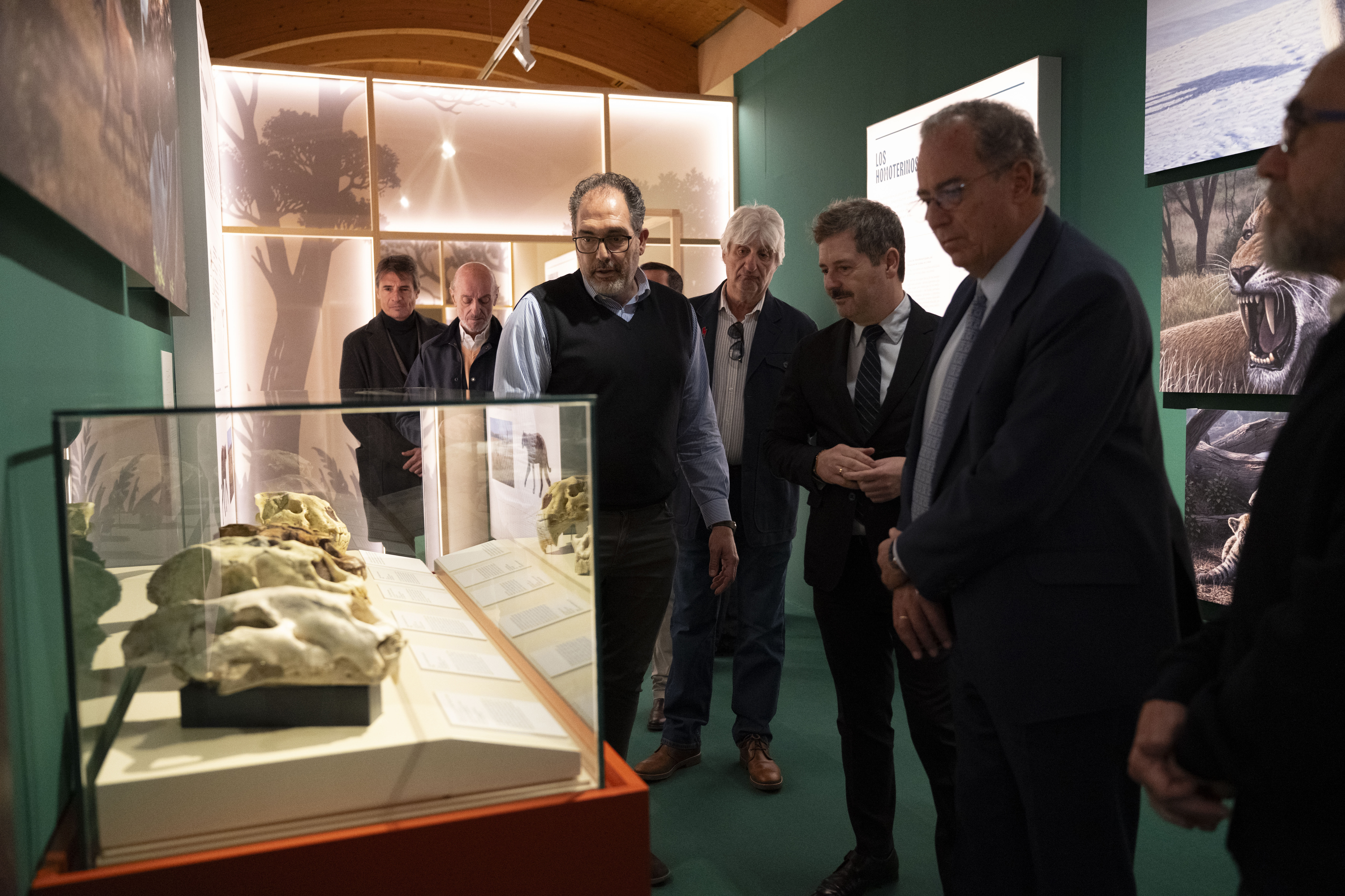 El consejero de Cultura, Turismo y Deporte, Mariano de Paco Serrano, ha inaugurado la exposición junto al director del MARPA, Enrique Baquedano. También han participado os comisarios de la exhibición: Mauricio Antón, paleoartista del Museo Nacional de Ciencias Naturales-CSIC; Manuel J. Salesa, investigador del mismo centro; Manuel Domínguez-Rodrigo, profesor de Prehistoria en la Universidad de Rice, y el propio Baquedano, así como representantes de las instituciones colaboradoras.
